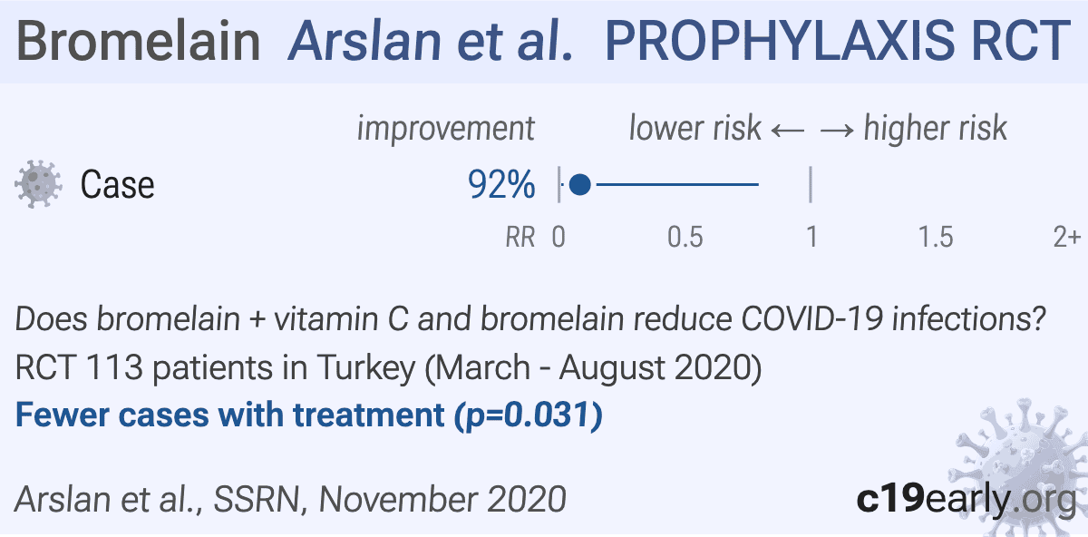 Arslan et al., 16 Nov 2020, Randomized Controlled Trial, Turkey, preprint, 7 authors, study period 20 March, 2020 - 31 August, 2020, this trial uses multiple treatments in the treatment arm (combined with vitamin C and bromelain) - results of individual treatments may vary, trial NCT04377789 (history).