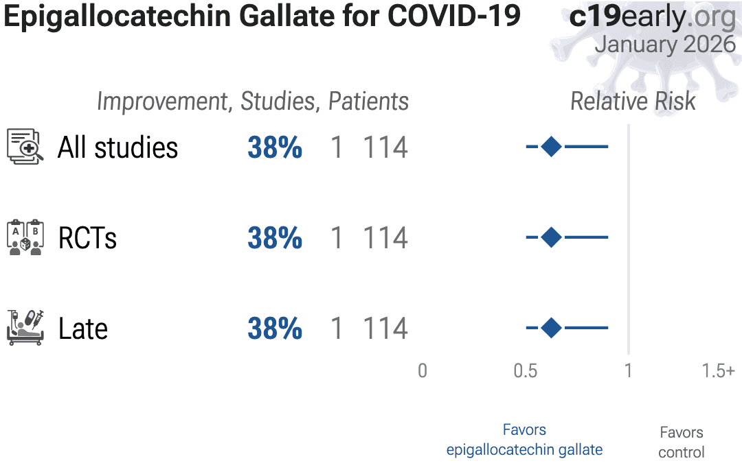 EGCG (epigallocatechin gallate) is a small molecule polyphenol derived from Camellia sinensis that exhibits antiviral activity against SARS-CoV-2 via dual mechanisms: blocking viral entry by interfering with the Spike-ACE2 receptor interaction and inhibiting the viral 3CL protease (Mpro). Additionally, EGCG provides anti-inflammatory effects by modulating cytokine production, potentially mitigating the cytokine storm associated with severe COVID-19.