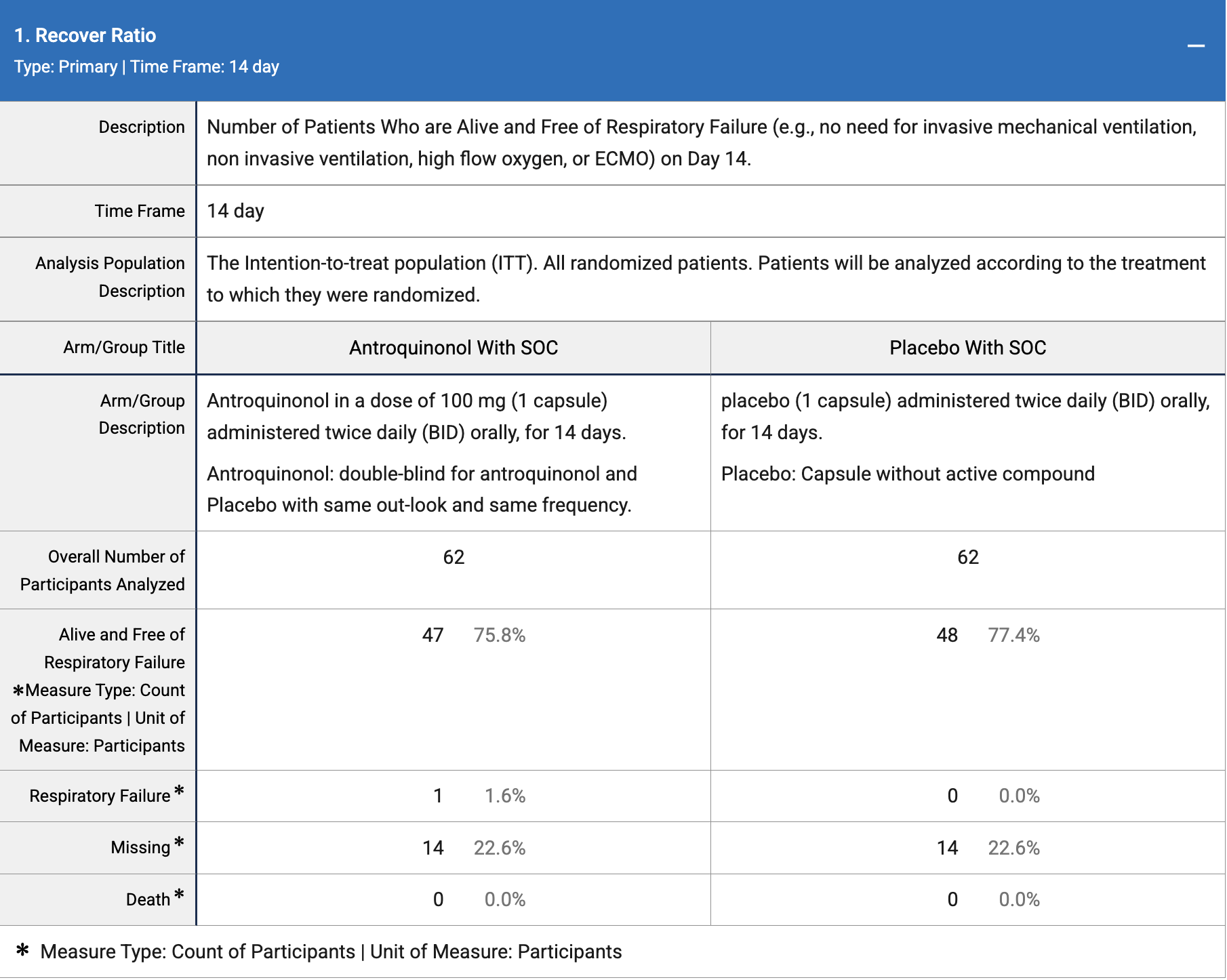 risk of progression, 200.0% higher, RR 3.00, p = 1.00, treatment 1 of 62 (1.6%), control 0 of 62 (0.0%), continuity correction due to zero event (with reciprocal of the contrasting arm), respiratory failure.