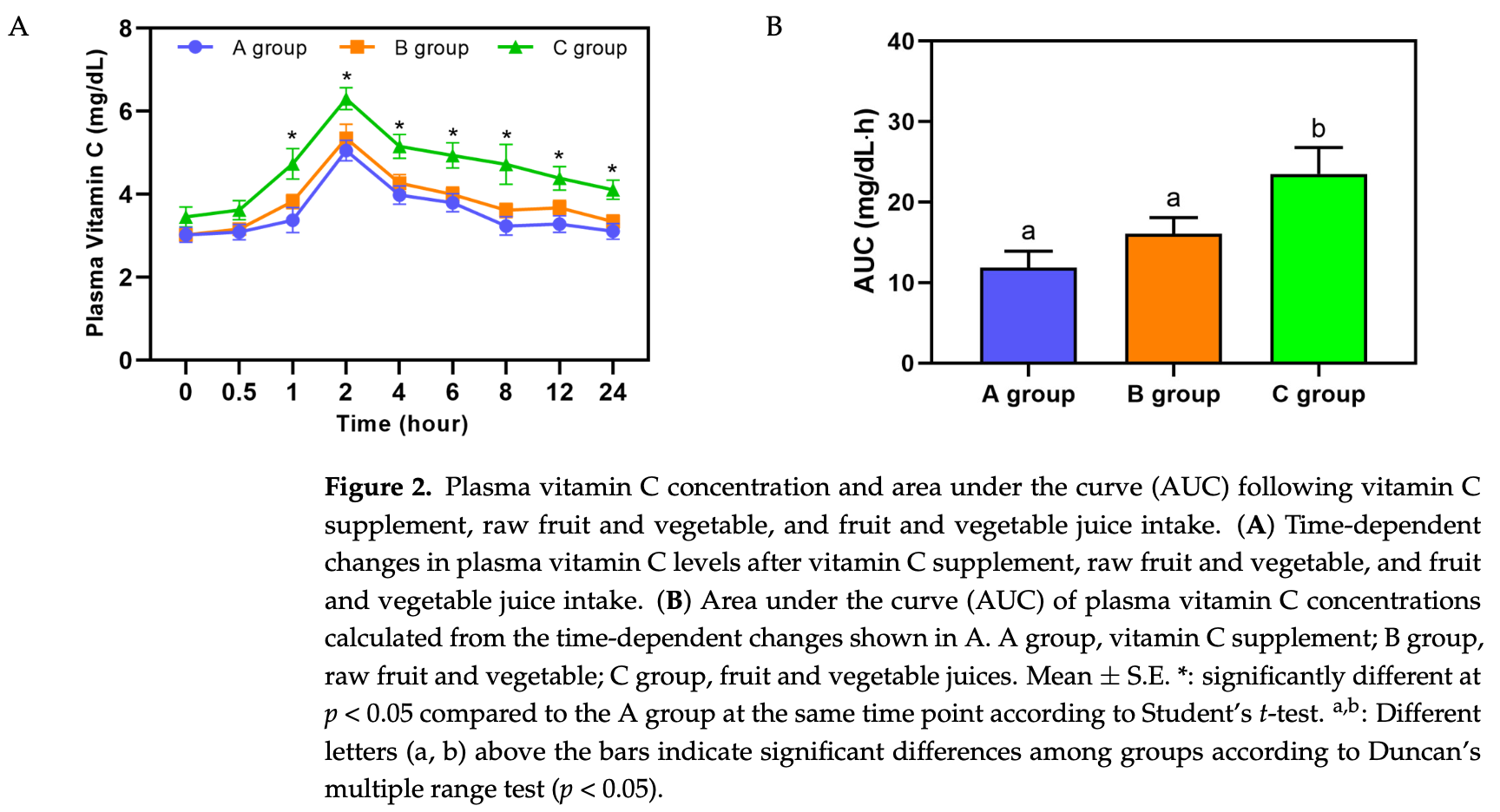 "title": "Comparative Bioavailability of Vitamin C After Short-Term Consumption of Raw Fruits and Vegetables and Their Juices: A Randomized Crossover Study",