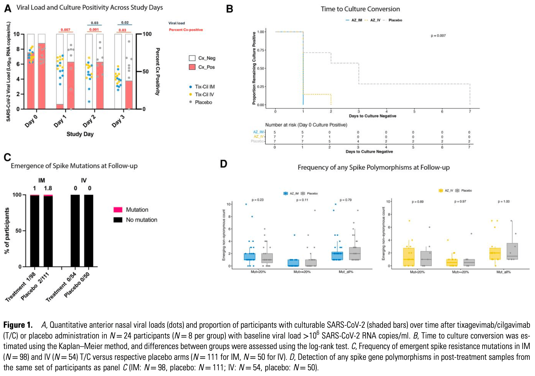 Bender Ignacio, Chew, Moser, Safety and efficacy of combined tixagevimab and cilgavimab administered intramuscularly or intravenously in nonhospitalized patients with COVID-19: 2 randomized clinical trials, JAMA Netw Open