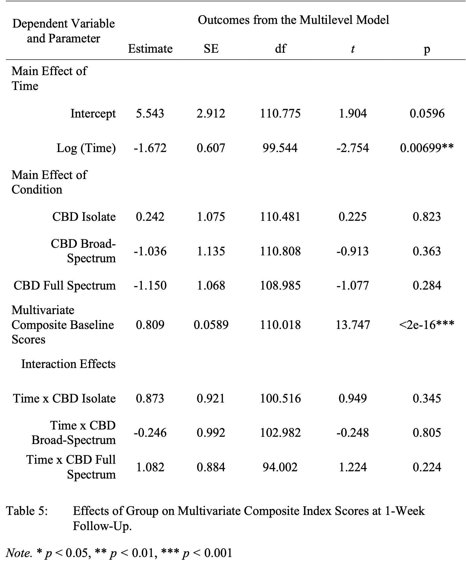 "abstract": "The COVID-19 pandemic heightened mental health challenges, highlighting the need for accessible and scalable interventions. This four-arm randomized placebo-controlled clinical trial compared the relative efficacy of different CBD oil formulations in reducing self-reported COVID-19 stress reactions, including anxiety, depression, anger, substance use, and sleep disturbance. After a baseline symptom assessment, participants (N = 148) were randomly assigned to one of four conditions: (1) 300 mg of pure CBD isolate, (2) 300 mg of broad-spectrum CBD, (3) 300 mg of full spectrum CBD, or (4) placebo oil. Participants took daily doses of their assigned treatment oil and recorded symptoms, adherence, and side effects in a nightly log over the four-week treatment period. We hypothesized that all three active CBD formulations would result in greater reductions in stress-related symptoms compared to placebo. Additionally, based on preclinical research on the entourage effect, we predicted that full spectrum CBD would outperform CBD isolate. Additional aims included exploring potential moderators of treatment response (e.g., baseline stress reactions) and assessing the safety and tolerability of daily CBD dosing. Results showed a significant effect of time across all groups but no significant interaction between time and treatment condition, indicating that reductions in stress reactions were similar across the CBD and placebo conditions at post-treatment and one-week follow-up. A marginal interaction between baseline distress and group was observed in the broad-spectrum group, suggesting those participants with higher baseline distress may have experienced greater improvements compared to the placebo (p = 0.079) and CBD full spectrum (p = 0.085) conditions. However, these findings should be interpreted with caution due to their marginal significance level. Last, most participants (73.68%) assigned to any of the three active CBD oil conditions reported no side effects. Consistent with the literature, most reported side effects were mild to moderate, and only four participants discontinued due to these concerns. Across the active conditions, 13 participants (13.68%) endorsed severe side effects, with 10 of these participants assigned to the CBD full spectrum condition. These findings add to the literature on CBD’s safety profile. Additional well-powered research is needed to examine CBD’s potential in attenuating stress reactions.",