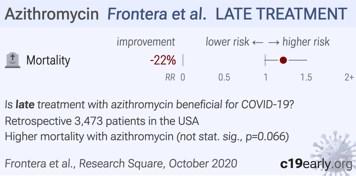 Retrospective 3,473 hospitalized patients showing higher mortality with azithromycin, without statistical significance. Authors note the removal of azithromycin from the treatment guidelines in April 2020, introducing confounding by time.