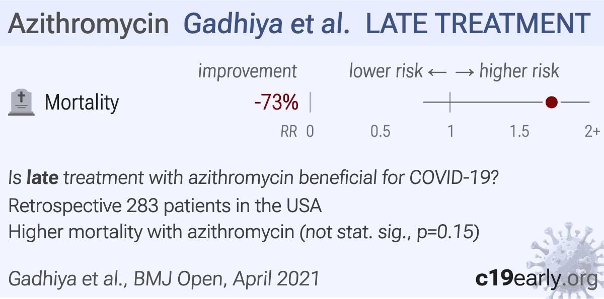 risk of death, 72.8% higher, RR 1.73, p = 0.15, treatment 43 of 182 (23.6%), control 12 of 101 (11.9%), adjusted per study, odds ratio converted to relative risk, multivariate logistic regression.