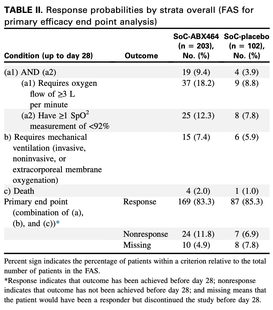 "value": "ABX464 (obefazimod) for patients with COVID-19 at risk for severe disease: miR-AGE, a randomized, double-blind placebo-controlled trial"