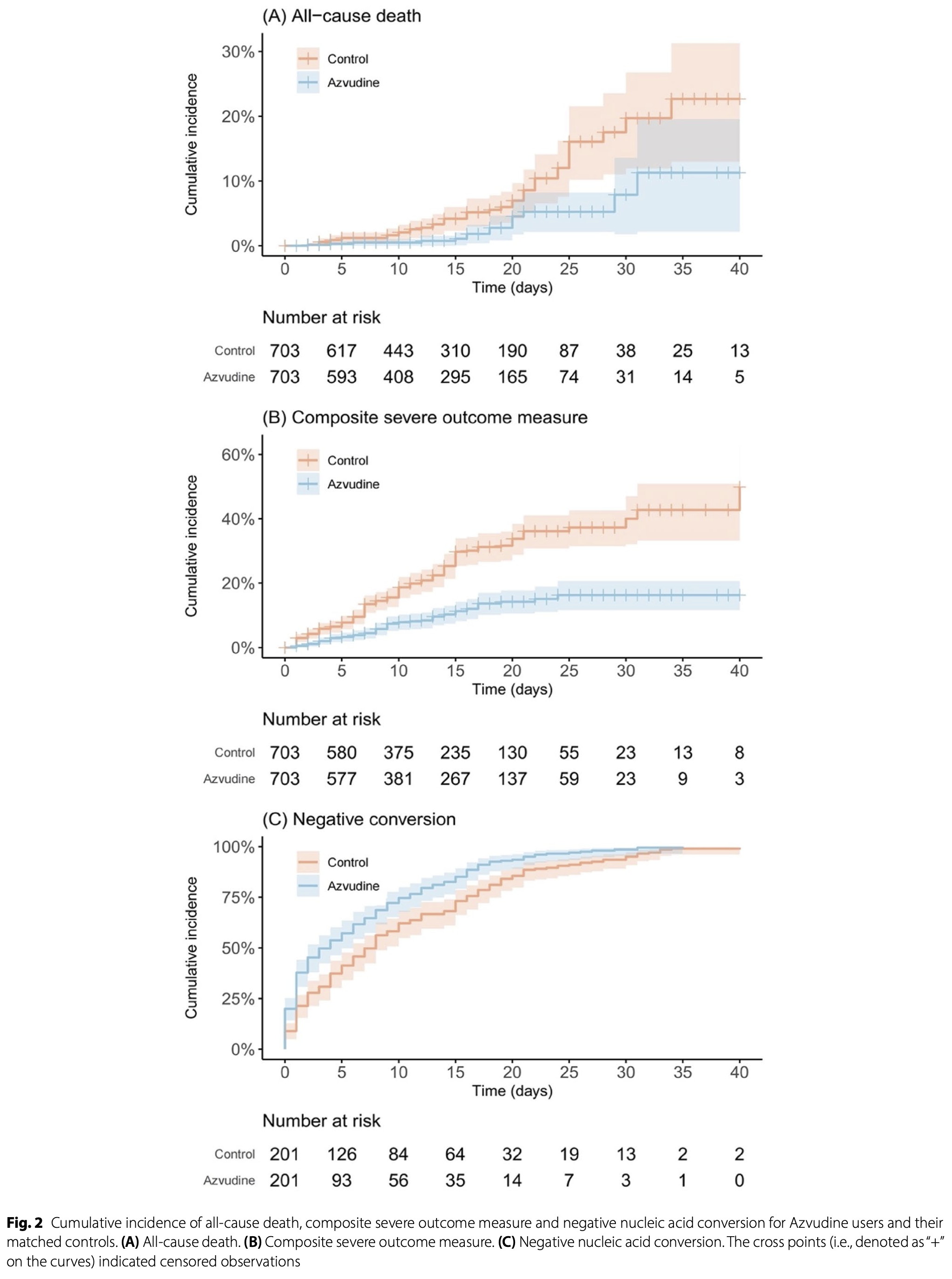 "title": "Association of Azvudine with severe outcomes among hospitalized patients with COVID-19 during an omicron-dominance period in Wuhan, China: a single-center, retrospective, matched cohort study",
