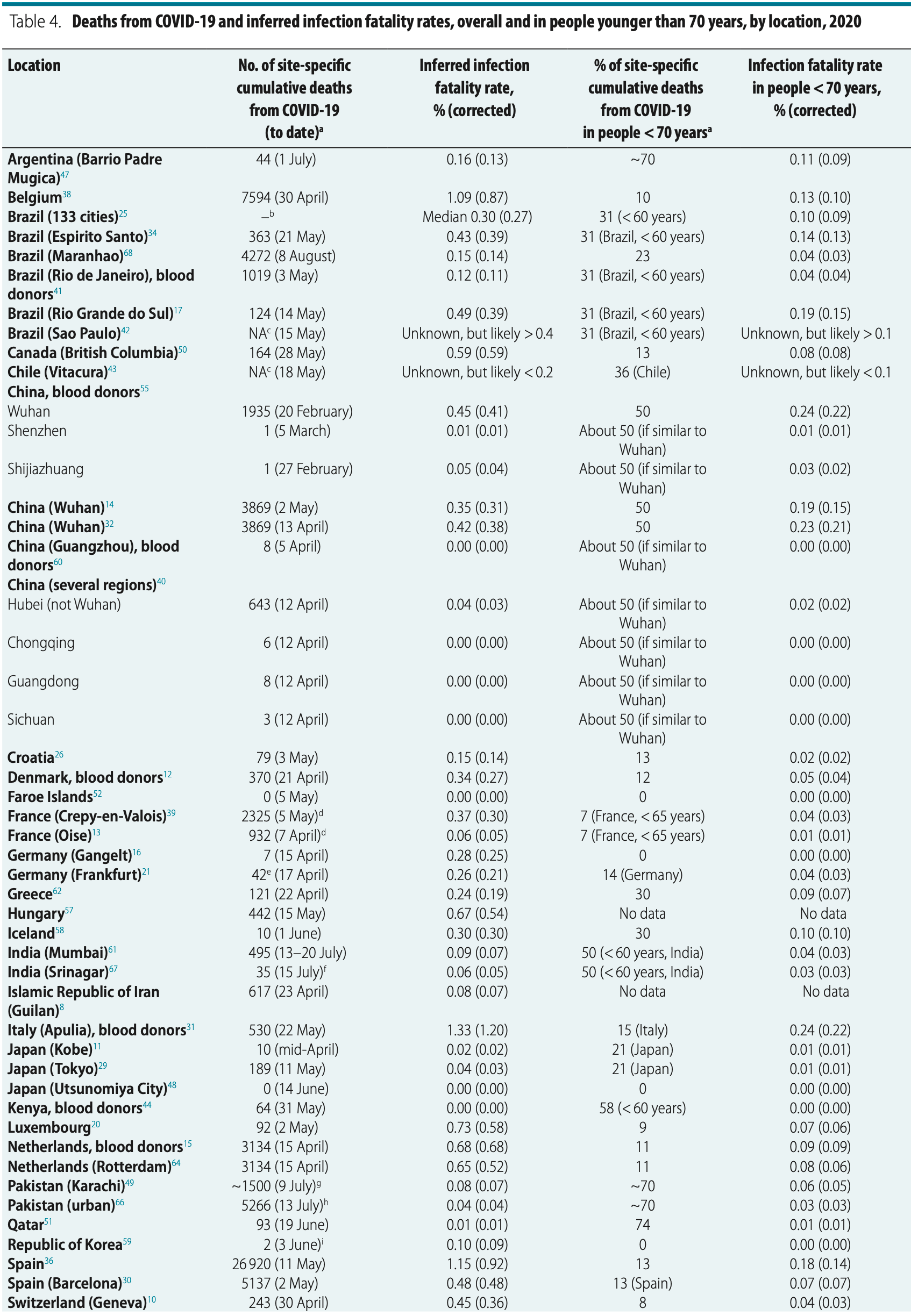 Meyerowitz-Katz, Merone, A systematic review and meta-analysis of published research data on COVID-19 infection-fatality rates [online ahead of print, Int J Infect Dis