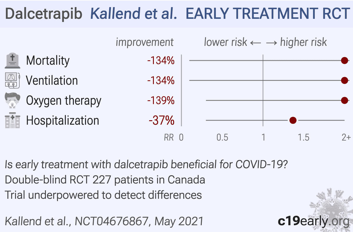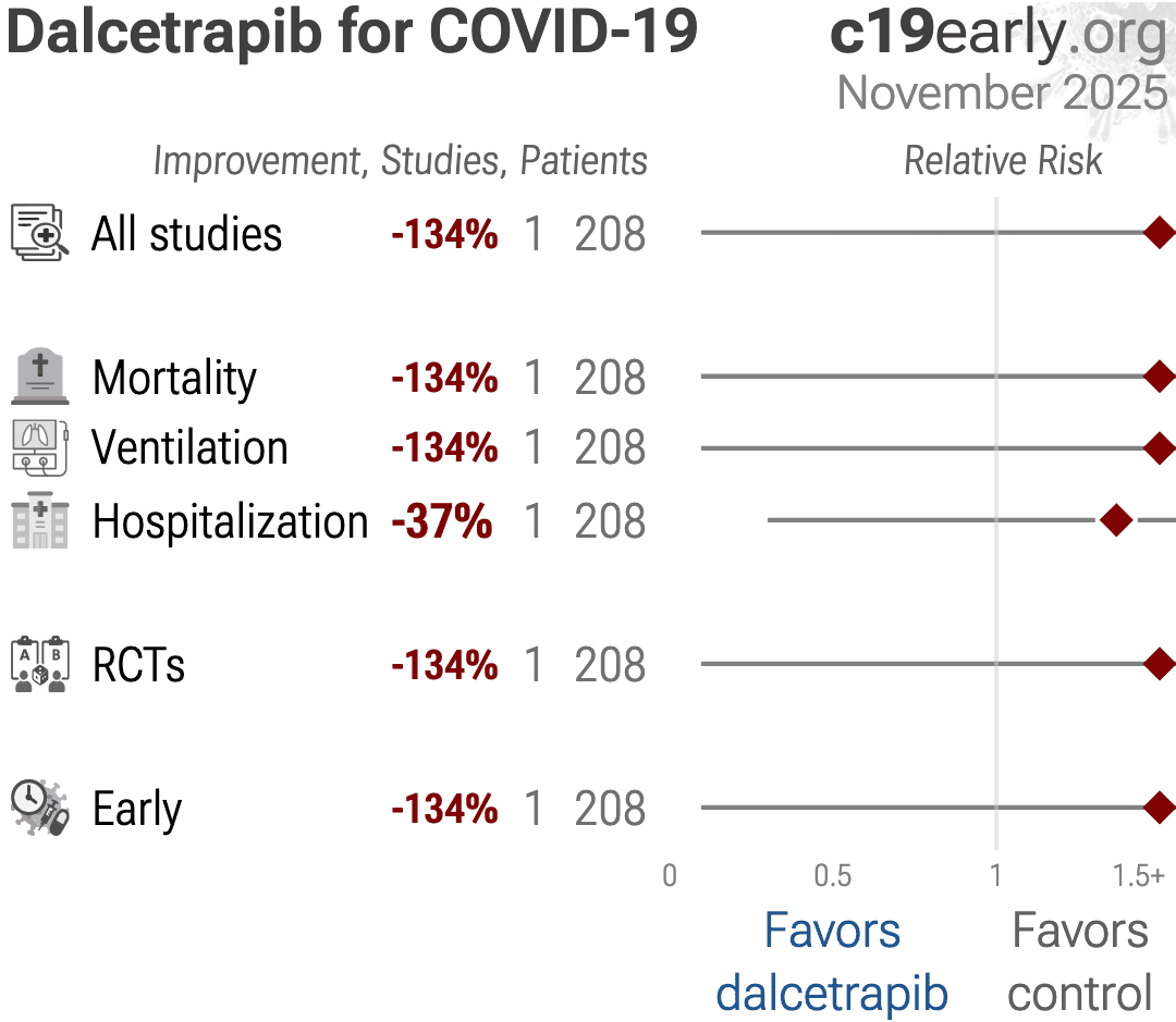 risk of hospitalization, 36.8% higher, RR 1.37, p = 1.00, treatment 8 of 155 (5.2%), control 2 of 53 (3.8%).
