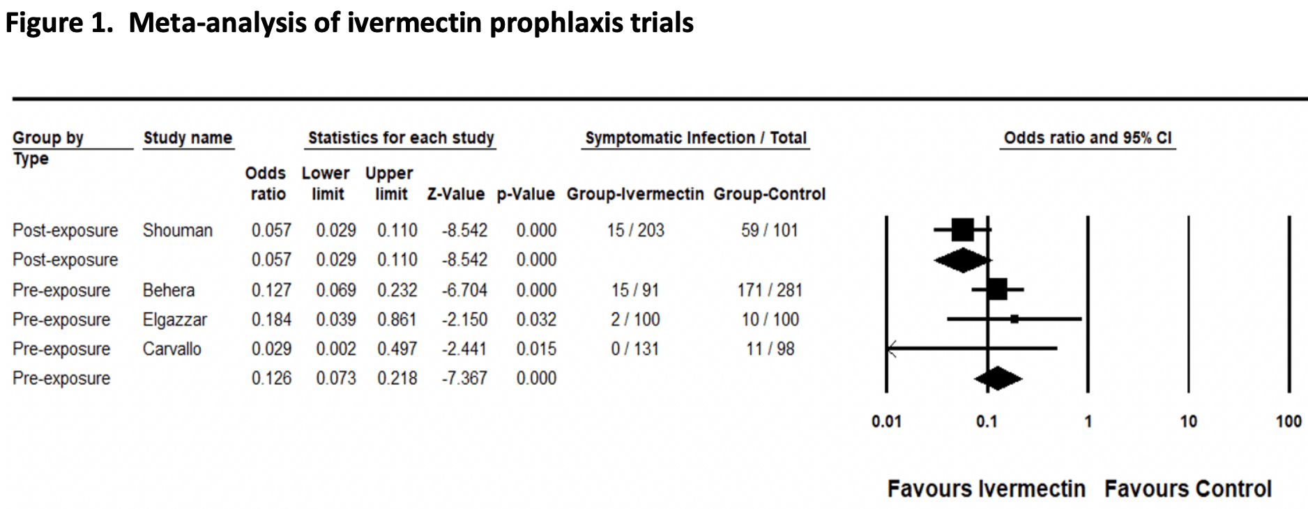 Meta analysis of ivermectin clinical studies and natural experiments where ivermectin has been widely used, showing efficacy of ivermectin in prophylaxis and treatment of COVID-19.