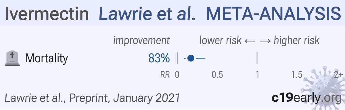 Lawrie et al., Ivermectin reduces the risk of death from COVID-19 – a rapid review and meta-analysis in support of the recommendation of the Front Line COVID-19 Critical Care Alliance, Preprint, b3d2650e-e929-4448-a527-4eeb59304c7f.filesusr.com/ugd/593c4f_8cb655bd21b1448ba6cf1f4c59f0d73d.pdf.