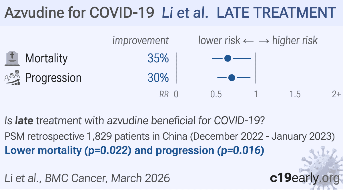 Retrospective 1,829 hospitalized cancer patients with COVID-19 in China showing lower mortality and disease progression with azvudine treatment.