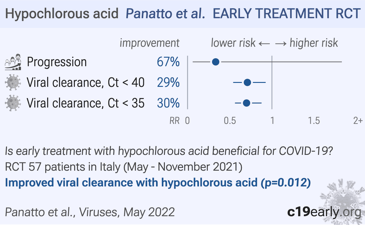 "abstract": "<jats:p>Sentinox (STX) is an acid-oxidizing solution containing hypochlorous acid in spray whose virucidal activity against SARS-CoV-2 has been demonstrated. In this paper, results of a randomized controlled trial (RCT) on the efficacy of STX in reducing viral load in mild COVID-19 patients (NCT04909996) and a complementary in vitro study on its activity against different respiratory viruses are reported. In the RCT, 57 patients were randomized (1:1:1) to receive STX three (STX-3) or five (STX-5) times/day plus standard therapy or standard therapy only (controls). Compared with controls, the log10 load reduction in groups STX-3 and STX-5 was 1.02 (p = 0.14) and 0.18 (p = 0.80), respectively. These results were likely driven by outliers with extreme baseline viral loads. When considering subjects with baseline cycle threshold values of 20–30, STX-3 showed a significant (p = 0.016) 2.01 log10 reduction. The proportion of subjects that turned negative by the end of treatment (day 5) was significantly higher in the STX-3 group than in controls, suggesting a shorter virus clearance time. STX was safe and well-tolerated. In the in vitro study, ≥99.9% reduction in titers against common respiratory viruses was observed. STX is a safe device with large virucidal spectrum and may reduce viral loads in mild COVID-19 patients.</jats:p>",