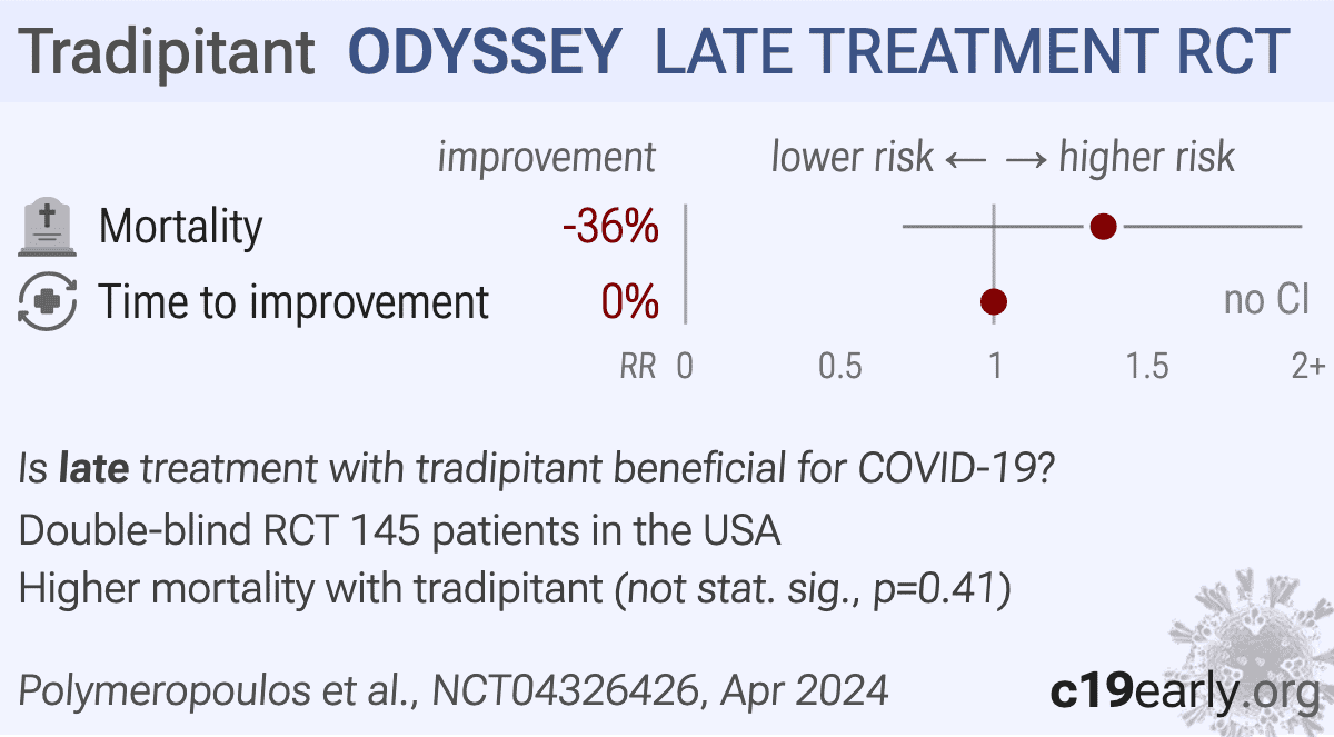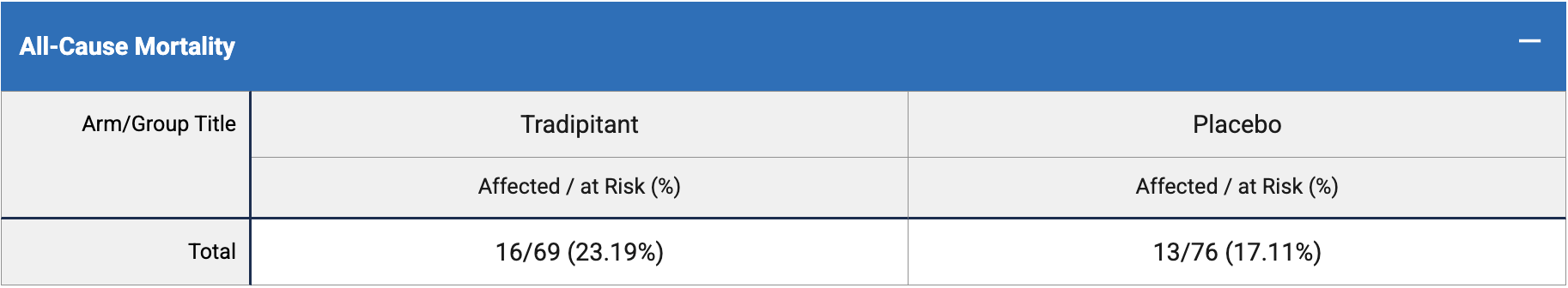 RCT 145 severe/critical COVID-19 patients in the USA, showing no significant difference with tradipitant treatment.