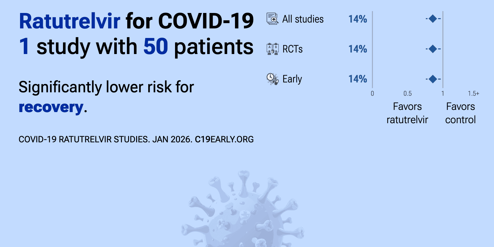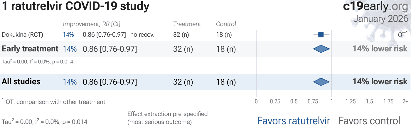 | 14% improved recovery (p=0.01). Interim results showing improved time-to-sustained symptom alleviation and resolution with ratutrelvir. | ||