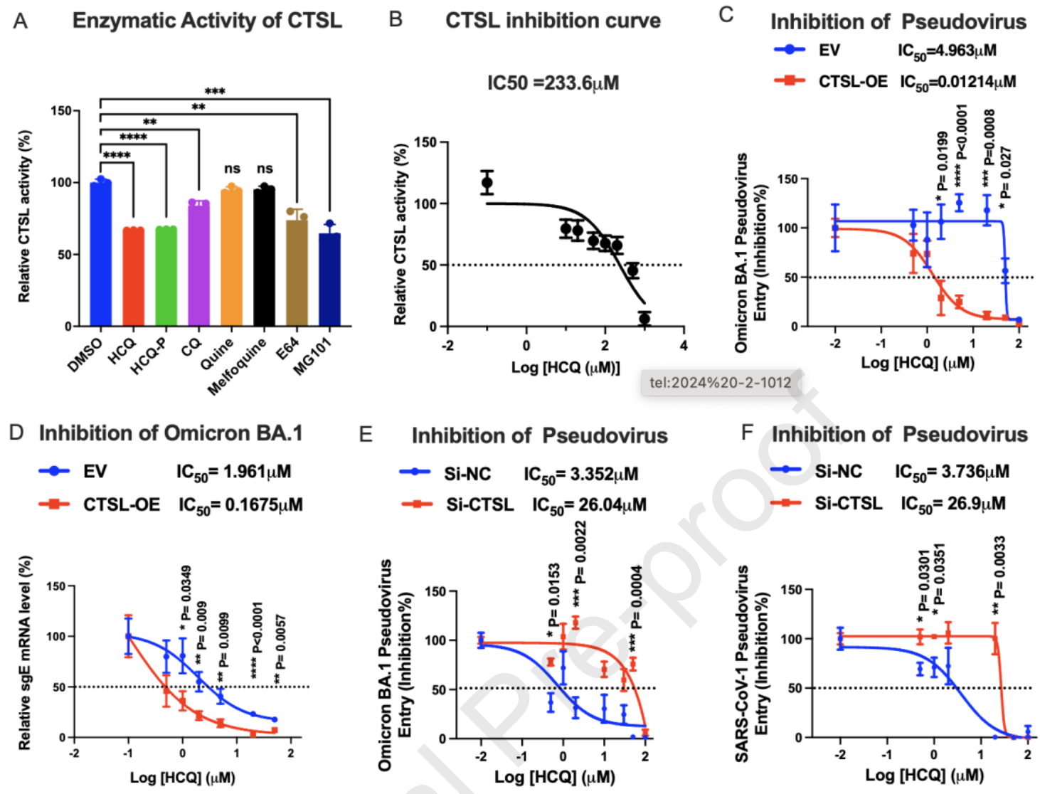 Extensive biochemical and in silico analyses were conducted to validate the HCQ-CTSL