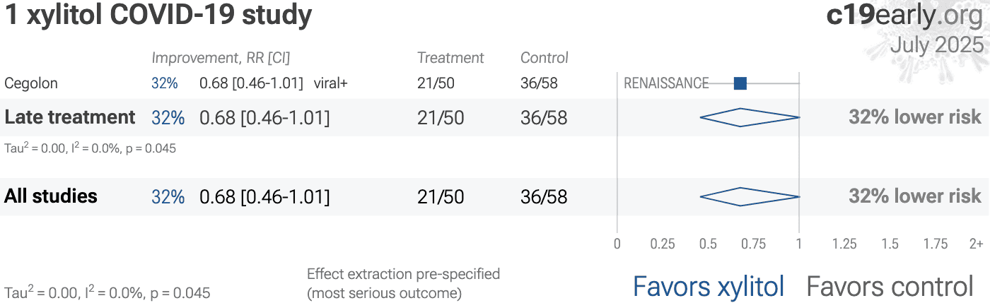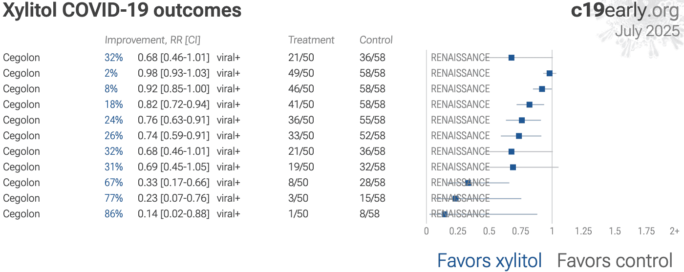 | In vitro study showing that a nasal spray with xylitol and grapefruit seed extract inhibited SARS-CoV-2. | ||
