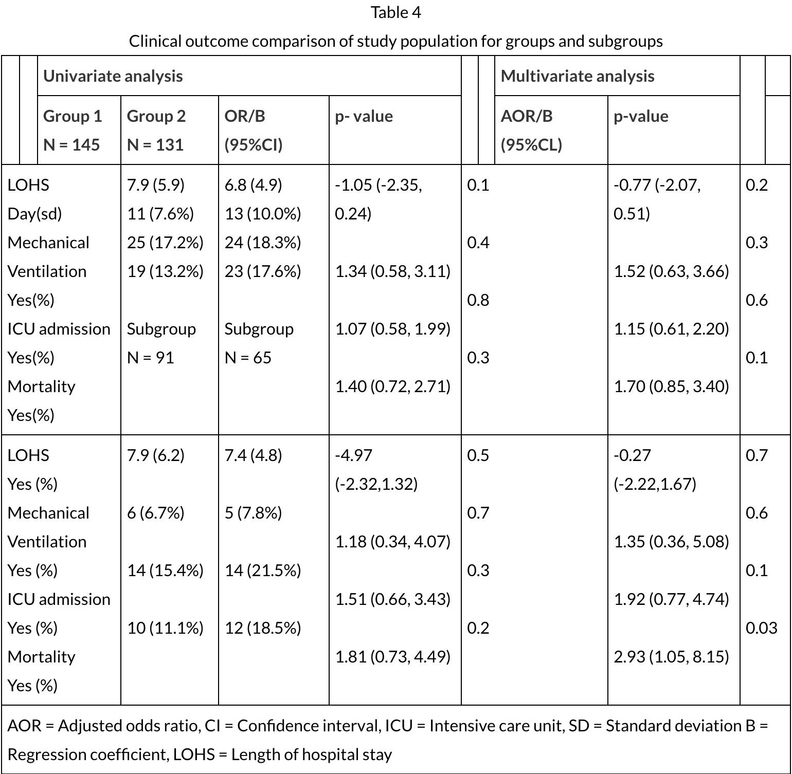"abstract": "<title>Abstract</title>\n <p>Background\n In this study, we aimed to assess the prevalence of vitamin D deficiency in hospitalized Covid-19 patients and demonstrate its association with severity and mortality of the disease.\nMethods\n This observational study at Ziaeian Hospital, Tehran, Iran. Of all confirmed COVID-19 patients who were admitted to this hospital 276 patients were enrolled in this study and divided into two groups; 145 patients in group1 with a serum 25(OH)D level > 20 ng/ml and 131 patients in group 2 with a serum 25 (OH)D level = < 20 ng/ml. The severity, outcome, and mortality of COVID-19 disease were compared in these two groups, based on chest CT scans findings, laboratory data, and patient' vital signs on admission day, and the duration of hospitalization, requirement to ICU admission, need for intubation, and mortality.\nResults\n The prevalence of vitamin D deficiency was 22.1%, and vitamin D insufficiency by definition of serum 25(OH)D levels 12–20 ng/ml was 25.4%. Despite, an increase in serum levels of CPK, Ferritin, LDH, CRP, D-dimer, AST, and ALT, there was not any significant relationship between serum level of 25(OH)D with laboratory tests, chest CT scan scores, and patient's vital signs on admission day by univariate and multivariate analysis. The odds of incidence of ICU admission, mechanical ventilation, and mortality were higher in group 2 which was not statistically significant by univariate and multivariate analysis. Still, the mortality was significantly higher in subgroup 2 by multivariate regression analysis.\nConclusion\n This study showed that vitamin D deficiency was associated with a higher mortality rate, while could not show any significant association between serum 25(OH)D levels with the incidence of ICU admission, need for mechanical ventilation, and length of hospital stay, also we did not find any significant relationship with laboratory tests, radiologic findings, and patient's vital signs on admission day.</p>",